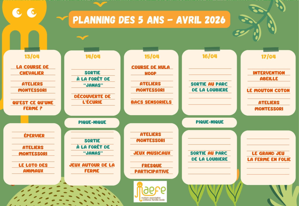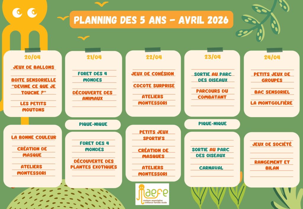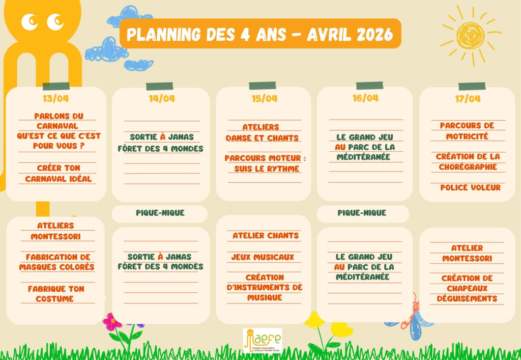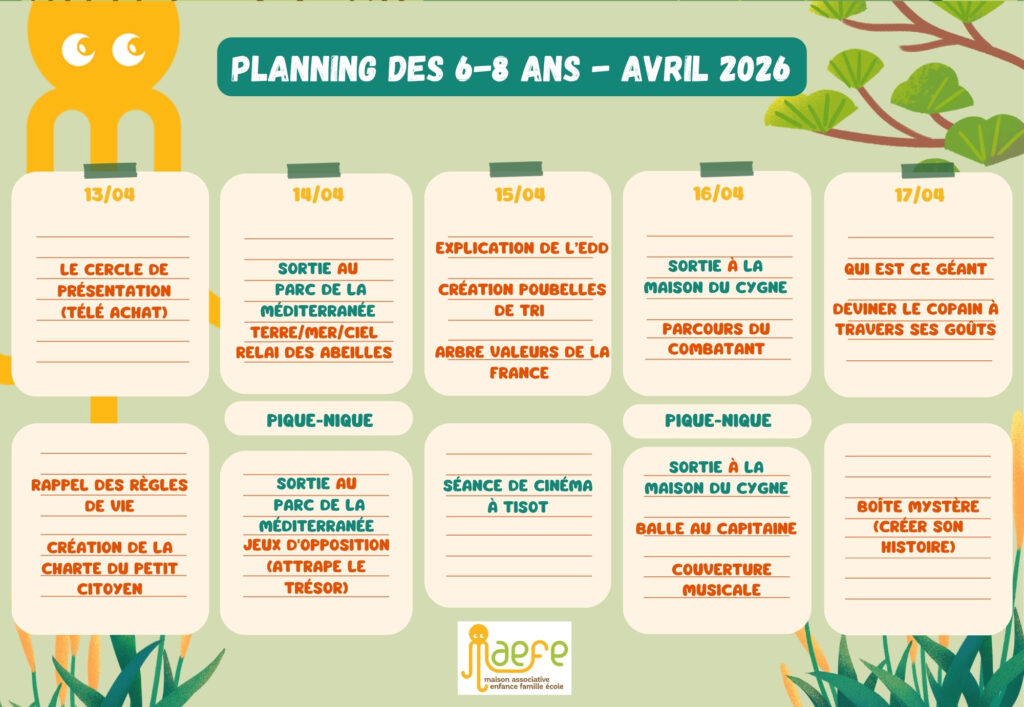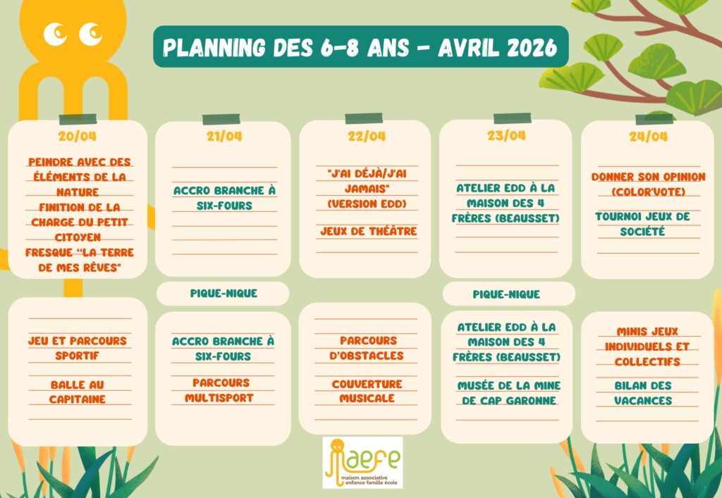 Planning du 30 avril au 28 mai – Les 6-8 ans
